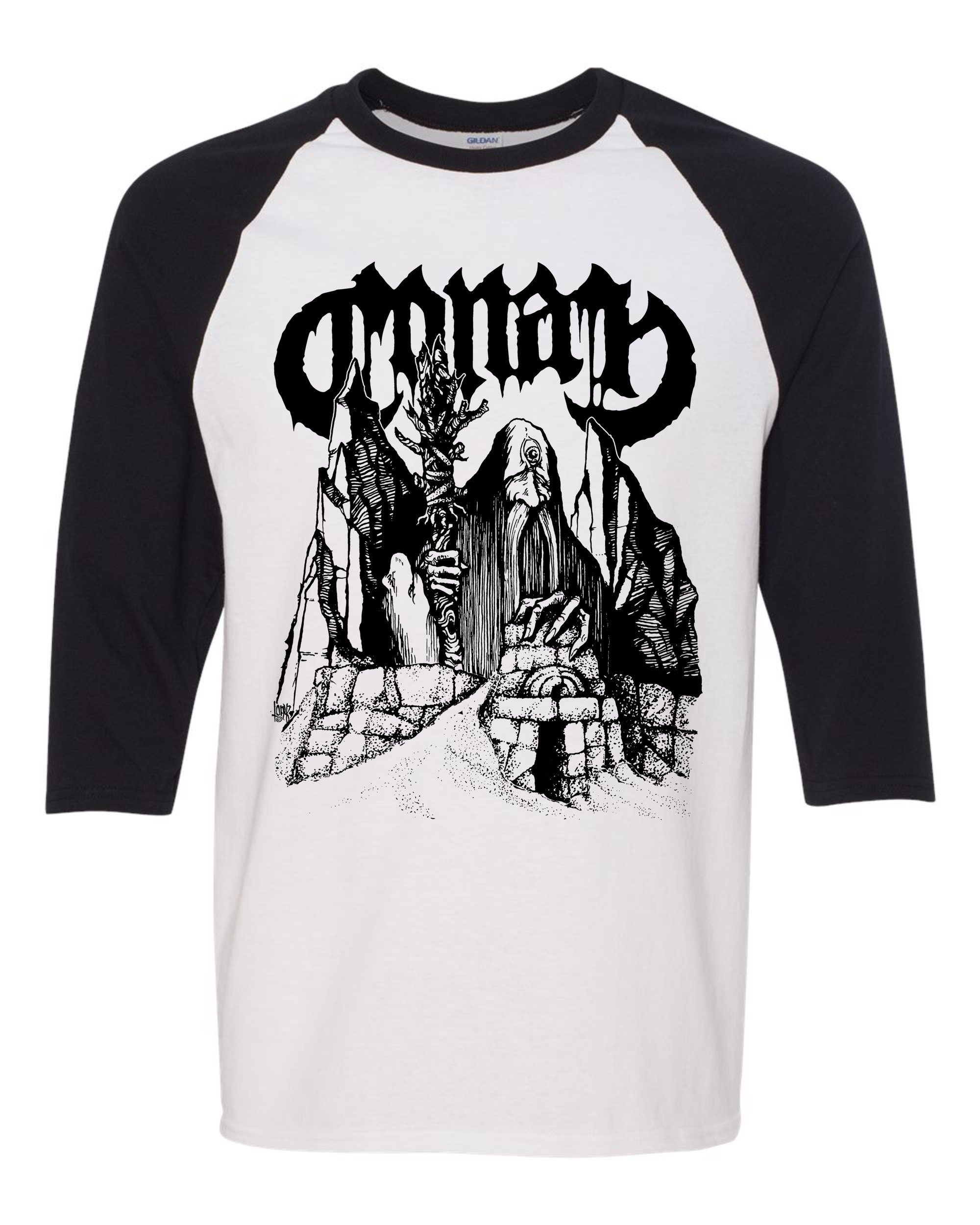 Krull white body, black sleeve 3/4 baseball t shirt Black print on the front
