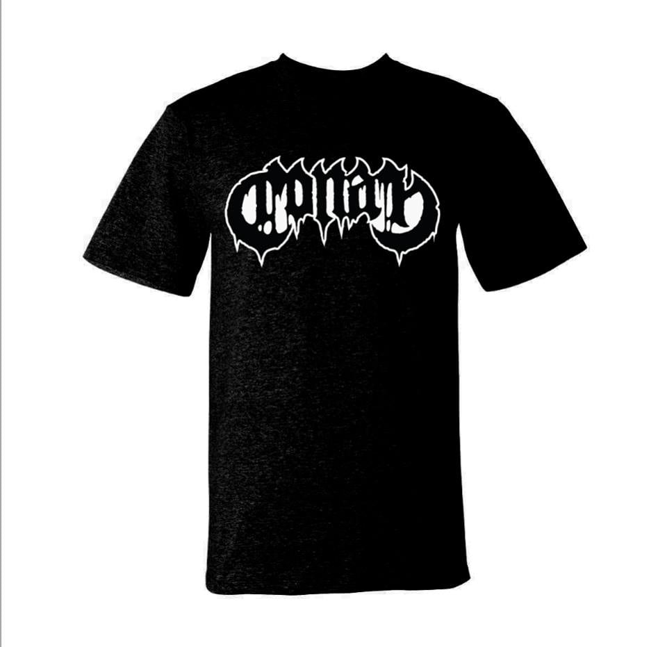 Black Gildan Heavy Cotton shirts. Logo design on the front in White Ink.